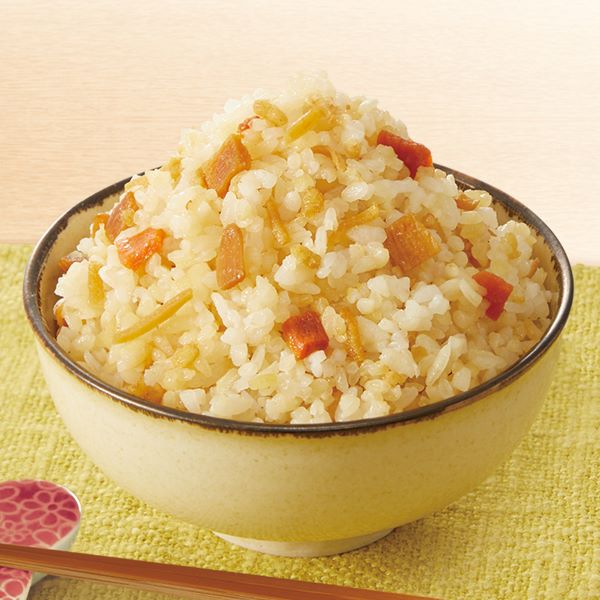うるち米(国産)、味付乾燥具材(水煮たけのこ、しょうが、加工米(玄米(国産))、食塩、乾燥にんじん、植物油、デキストリン、ほたてエキス、こんぶエキス、大麦乳酸発酵液ギャバ、糖加工品、酵母エキス)/トレハロース、調味料(アミノ酸)、カラメル色素、ビタミンB1、ビタミンB2