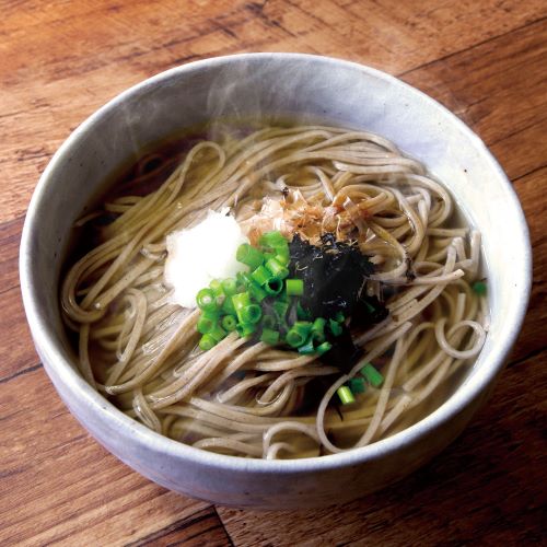 そば粉:日本、小麦粉:アメリカ他、食塩、小麦たん白/酸味料、打粉(加工でん粉))、つゆ(ぶどう糖果糖液糖、しょうゆ、発酵調味料、食塩、かつお節エキス/調味料(アミノ酸等)、カラメル色素、酸味料)、(一部にそば・小麦・大豆・豚肉を含む)