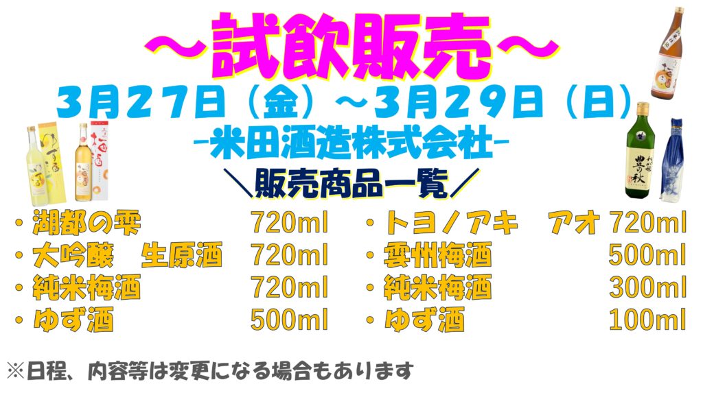米田酒造株式会社による試飲販売を開催いたします